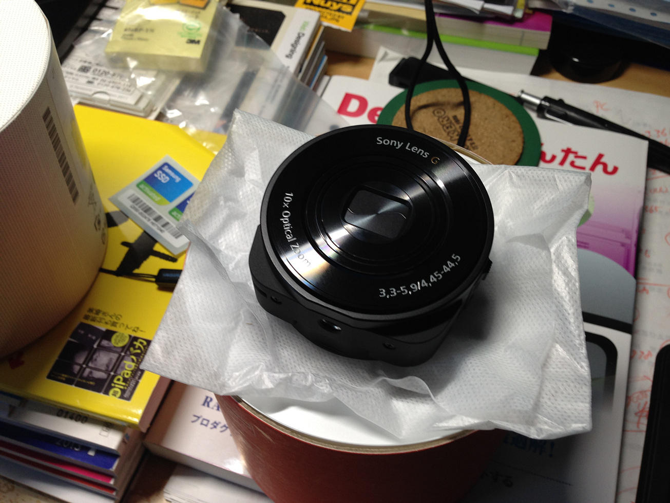 SONY Cyber-shot DSC-QX10 発売前に予約していたCyber-shot DSC-QX10が昨日来ました 変わったパッケージにビックリ ふたを開けるとこんな感じ で、デジカメ本体はこんなサイズ、小さいだろうとは思っていたけど実際見てみるとより小さく感じる。質感は価格相応。この頃ずっとミラーレスを使っていたので久しぶりのコンパクトデジカメです、それもこんなに変わったカメラ、スマホはiPhone5なのでWiFi接続ですがまだ接続していません。 使用感などはまたあとで。